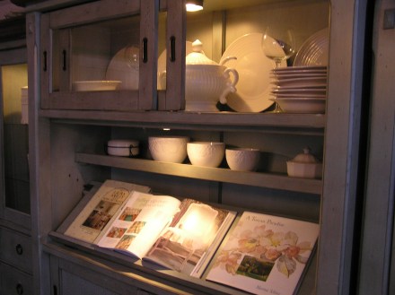 Cupboard with white bowls