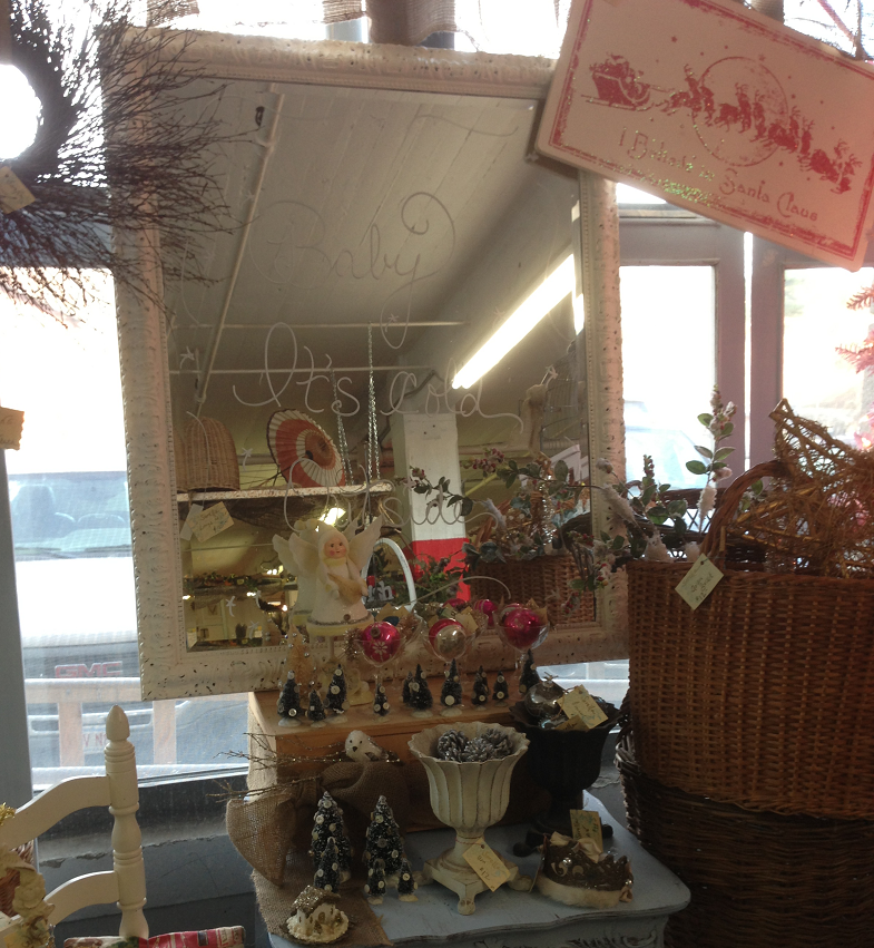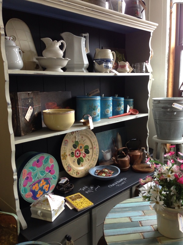 Once installed, I added an antique plank shelf on top-solely for decorative purposes-that I can change and arrange for the seasons. Love those antique white brackets!